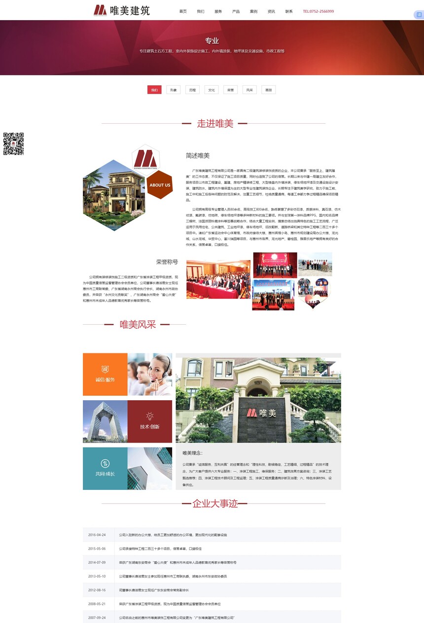 广东唯美建筑工程有限公司是一家具有二级建筑装修装饰资质的企业,本公司秉承“服务至上、建筑臻美”的工作态度,不仅保证了施工项目质量,同时也造就了公司的信誉。长期以来与中建一局建立友好合作,服务项目以市政工程建设、基建、房地产精装修工程、大型楼盘内外墙涂装、停车场地坪漆及交通设施设计安装、建筑防水、建筑内外墙保温为主的大型专业性建筑装饰企业,长期专注于建筑美学研究,致力于施工前、施工中和施工后各种问题的防范及解决,注重工艺细节,杜绝质量通病,每道工序都力争过程精品确保项目精品。